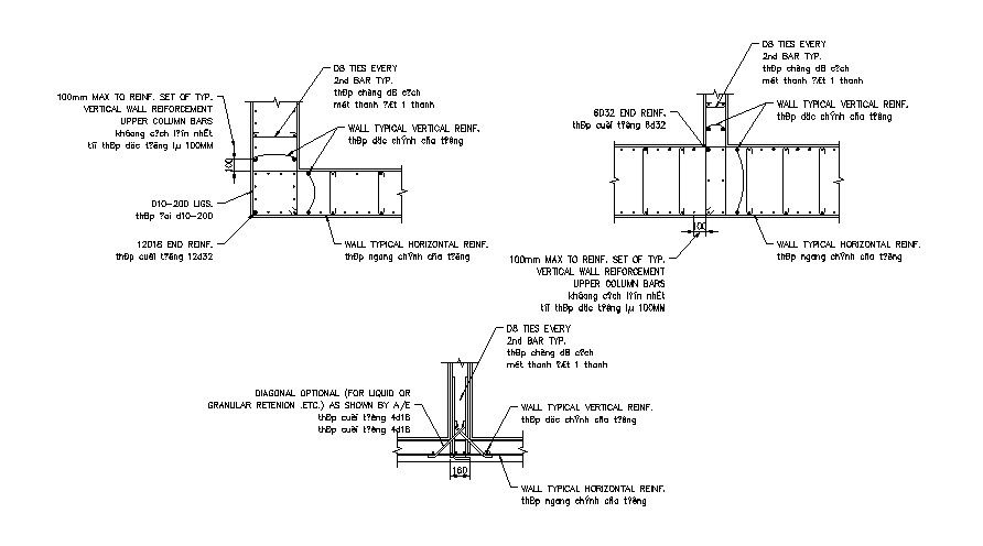Wall reinforcement details; include the details of vertical and horizontal reinforcement.
