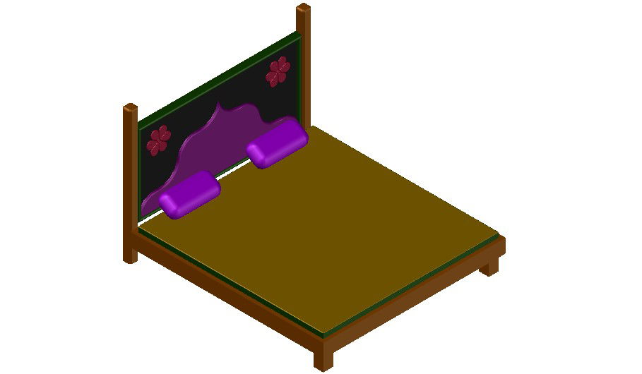 Isometric view design of furniture double bed download CAD Drawing for free.