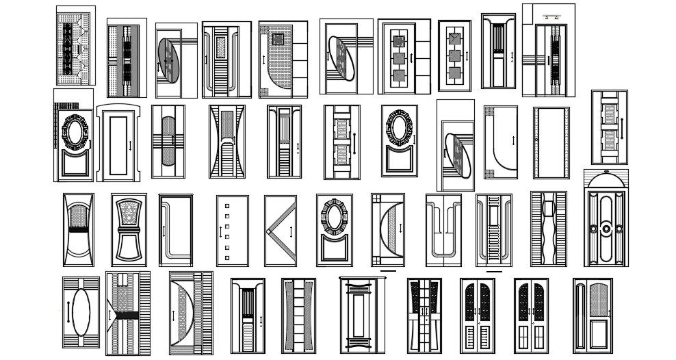 CAD drawing details of various door design blocks download files for multiple door blocks.