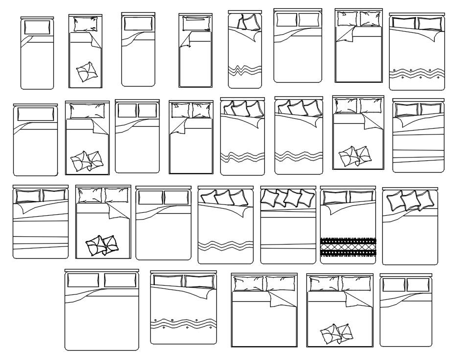 Free Bed CAD Blocks in DWG Format for AutoCAD Drawing
