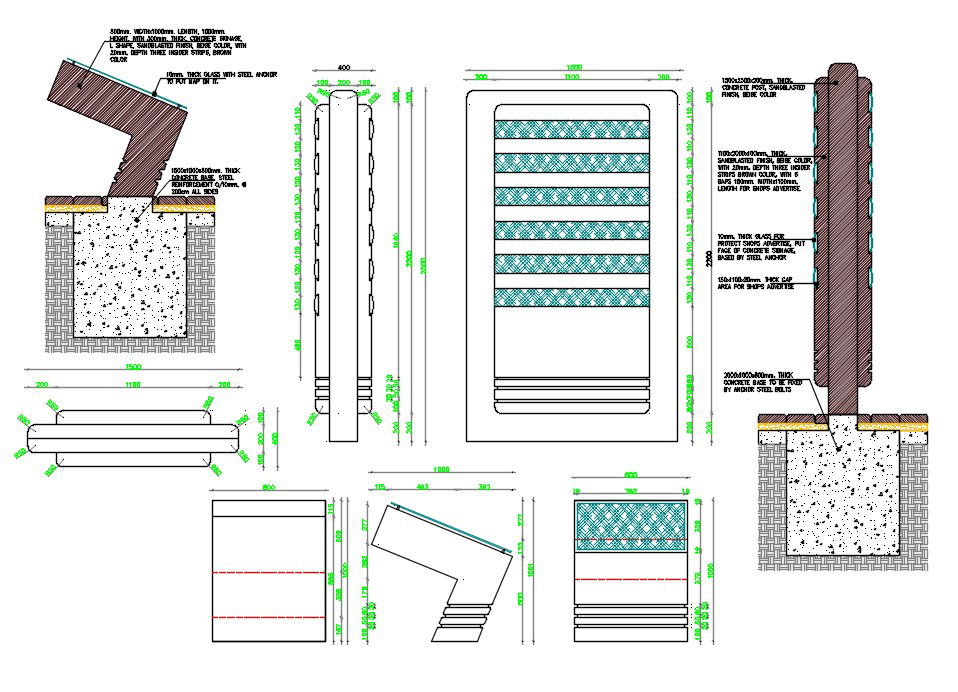 Concrete Work CAD Drawing; download free AutoCAD file of concrete CAD drawing includes base detail, column, and concrete base steel reinforcement detail.