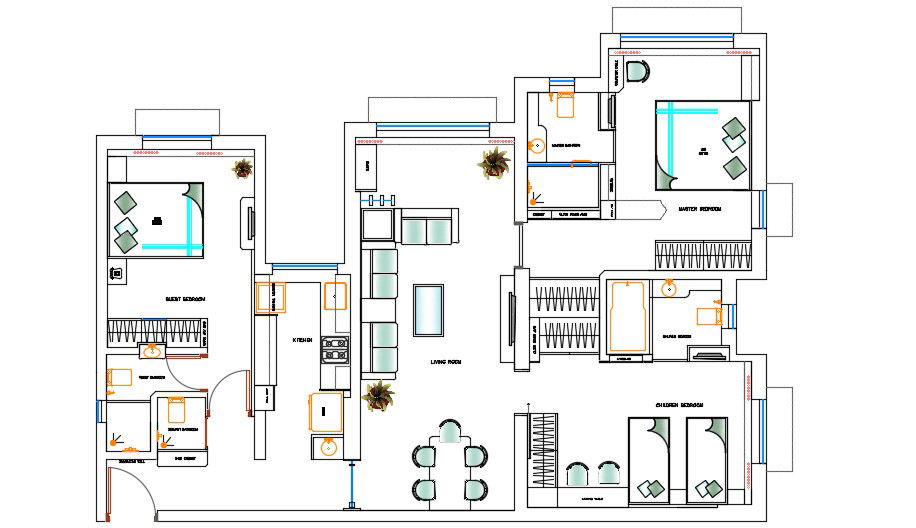 Furnished 3 BHK Residential Bungalow CAD Drawing
