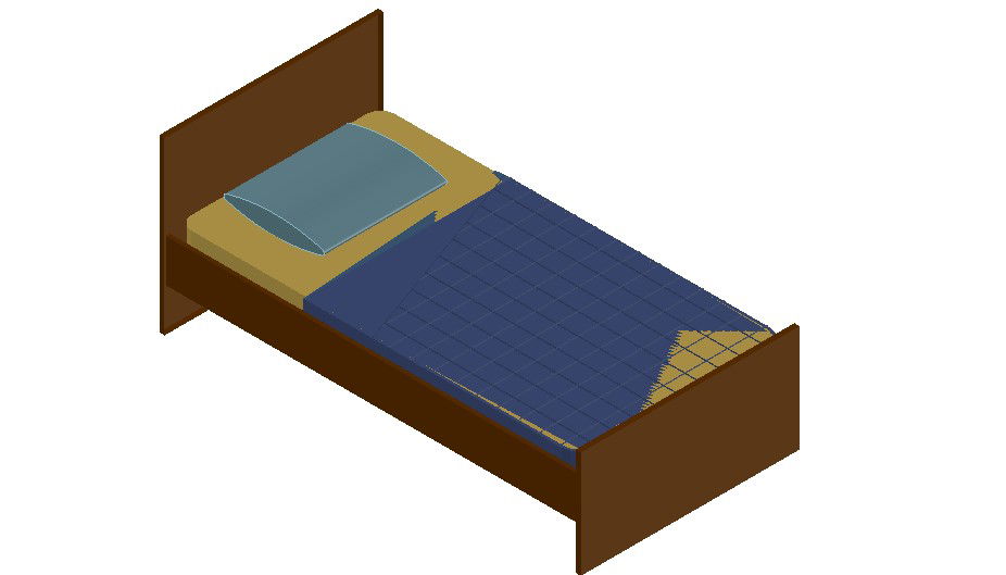 Wooden single bed isometric view design of furniture blocks download CAD file for free.