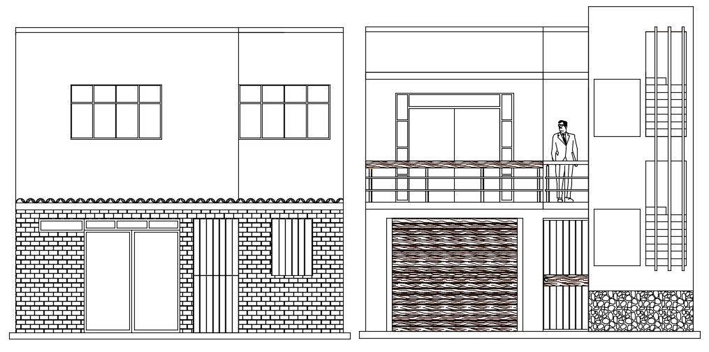 CAD drawing details of bungalow front elevation and rear elevation design download file for free.