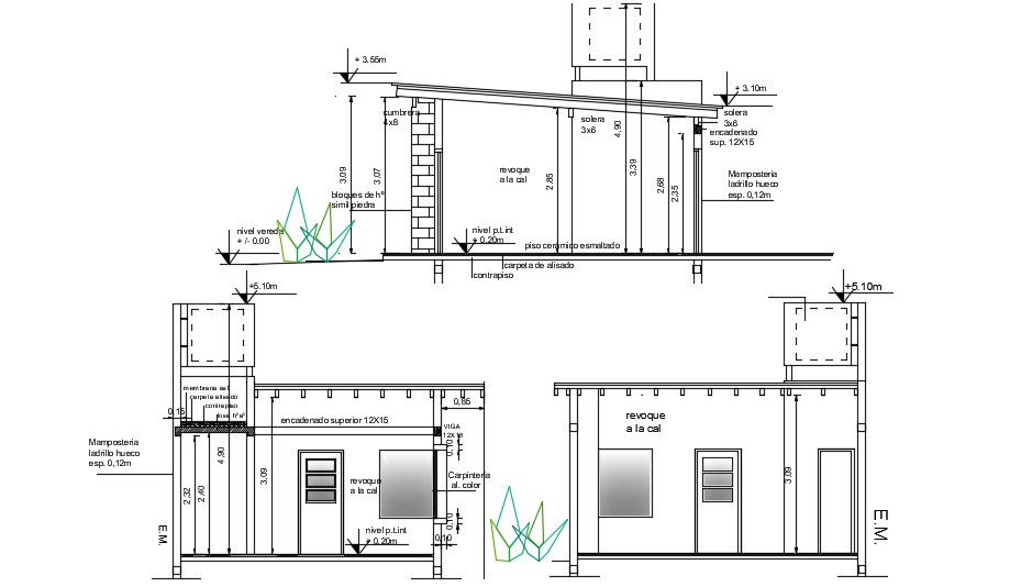 Residential house section design that shows single story house floor level details along with building leveling and various other details download the file.