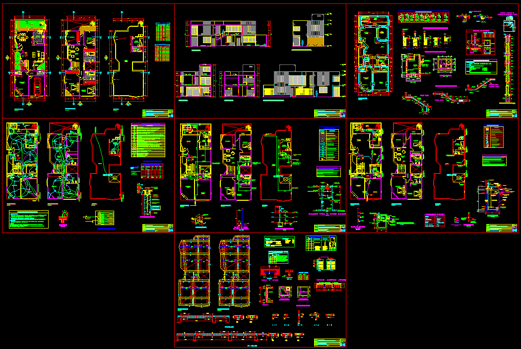 This AutoCAD DWG file presents a comprehensive 2D design of a modern bungalow with complete architectural details. The file contains all working drawings, including floor plans with furniture placement, electrical layouts, plumbing details, and sectional views. Each drawing is designed with accurate measurements and annotations, providing clarity for both design visualization and construction execution. Elevations are rendered with realistic detailing to showcase exterior aesthetics, while the layout ensures functionality and optimized space use.