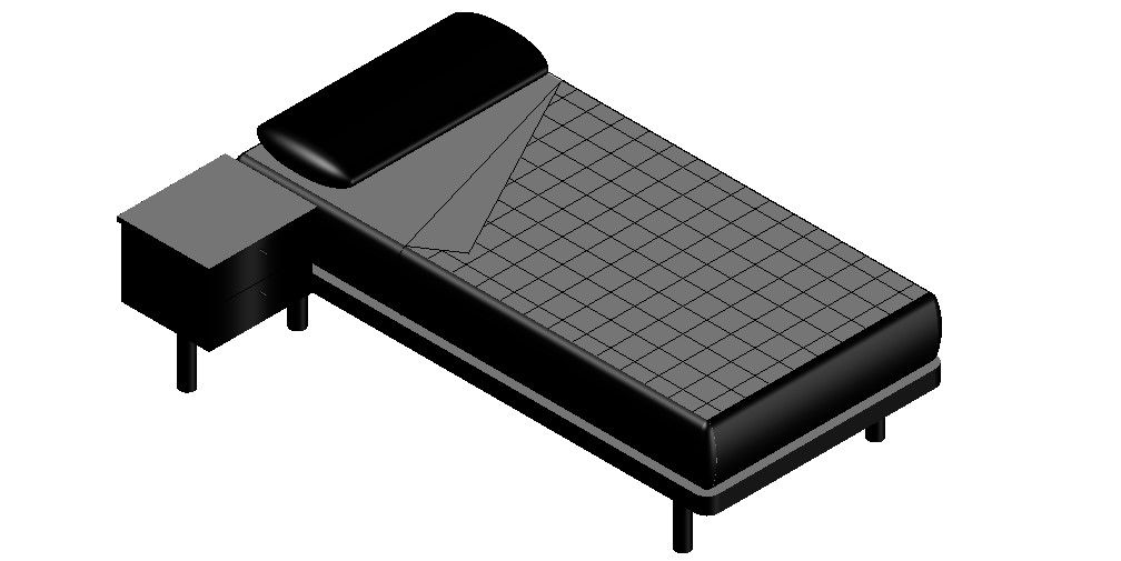 Isometric view design of single furniture bed units downloads CAD drawing for free.