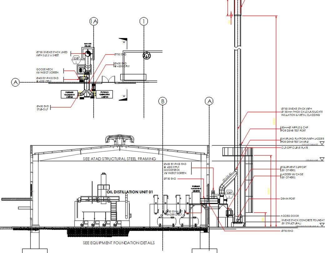 Smoke Stack Layout Plan DWG File; download free AutoCAD file industrial plant section drawing shows Smoke Stack ceiling design.