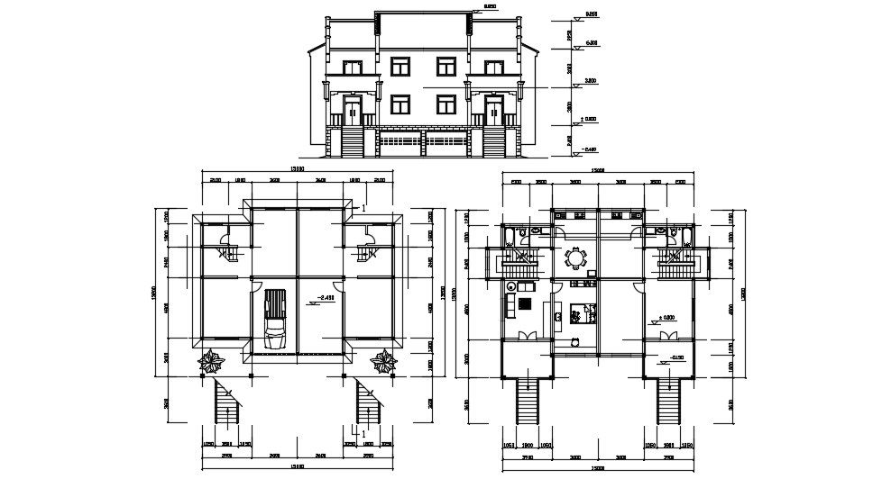 CAD drawing design of residential bungalow floor plan along with furniture blocks details in the house, working set dimension details, house front elevation design, and various other details of house download file for detailed work drawing.