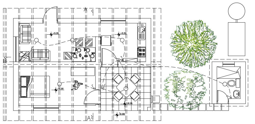 House Electrical Plan With Furniture LayOut AutoCAD File Free Download; electric plan of house with furniture canopy detail, landscape, CAD file free download,