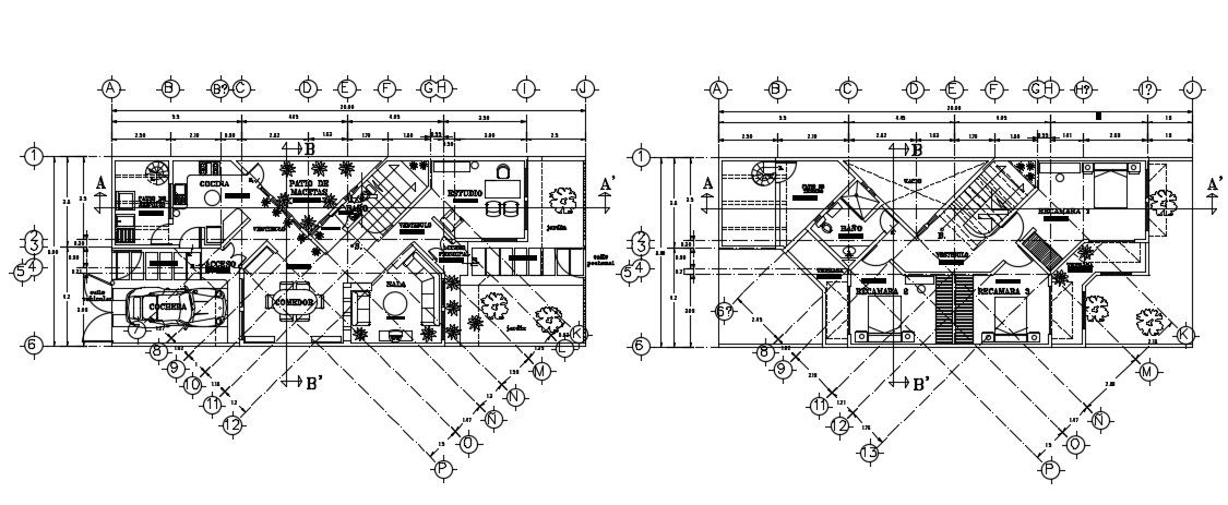 Modern Bungalow Design With Furniture And Parking Layout AutoCAD File Free; detail of bungalow includes furniture layout, centerline plan, working plan, in this bungalow provided kitchen, living, stair, bedrooms drawing the room and much more in it CAD file free,