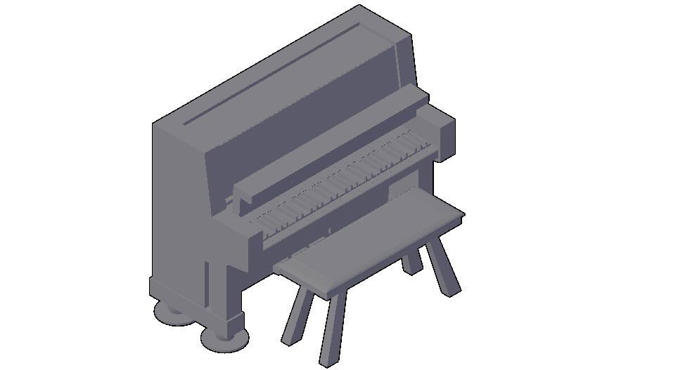 Isometric view design of Piano table furniture blocks downloads CAD drawing for free.
