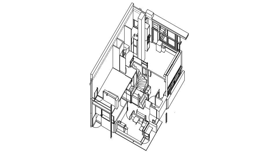 3D House Interior Design Drawing AutoCAD File Free; isometric view of house with all kinds of internal view CAD file free.