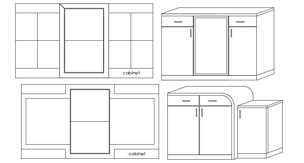 CAD drawing details of furniture cabinet blocks the isometric view and different sides of the elevation download file for free.