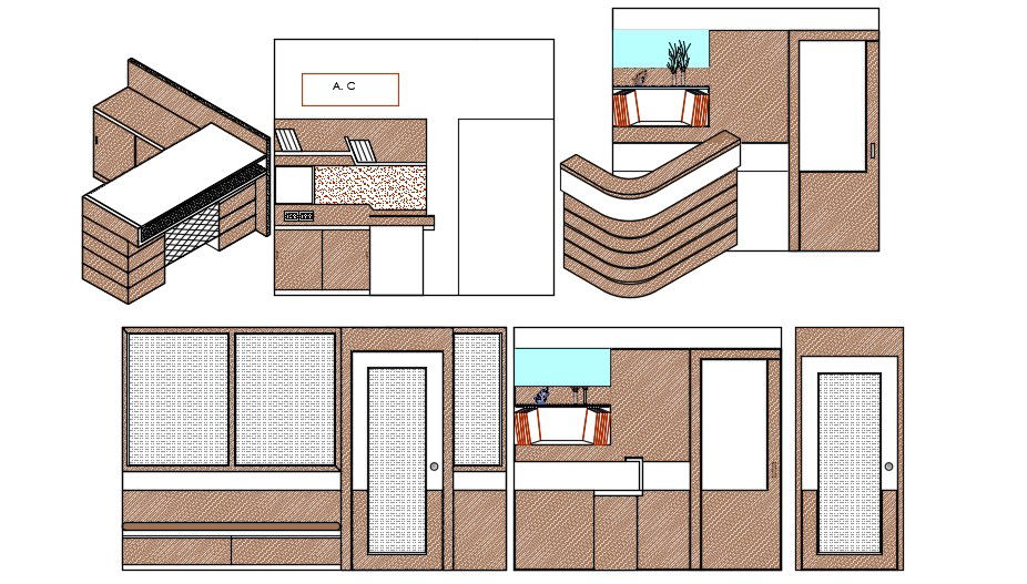 Furniture blocks details of office table elevation and isometric view design AutoCAD drawing download file for free.