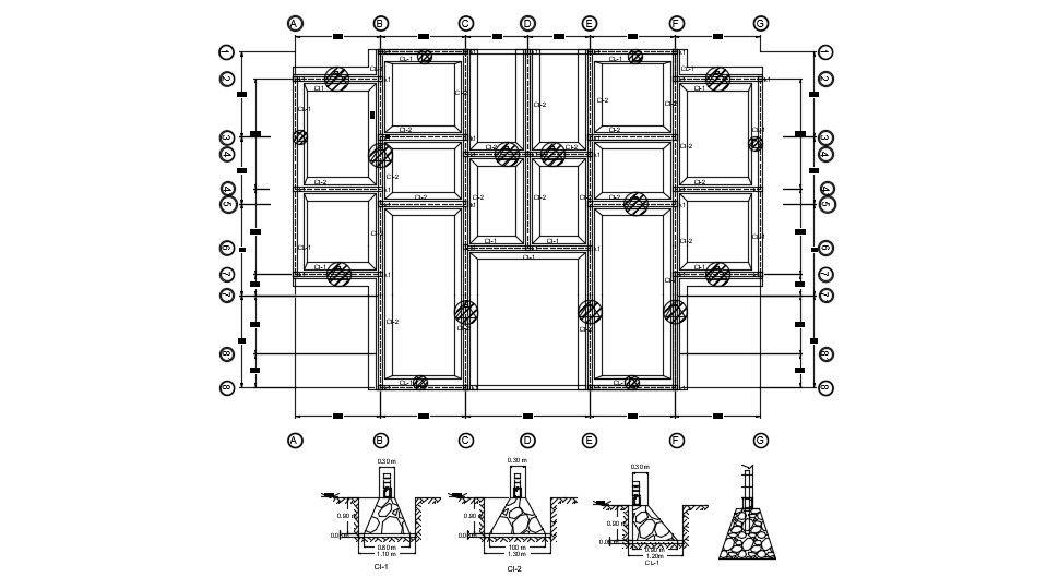 Foundation Footing Drawing with center line AutoCAD File Free