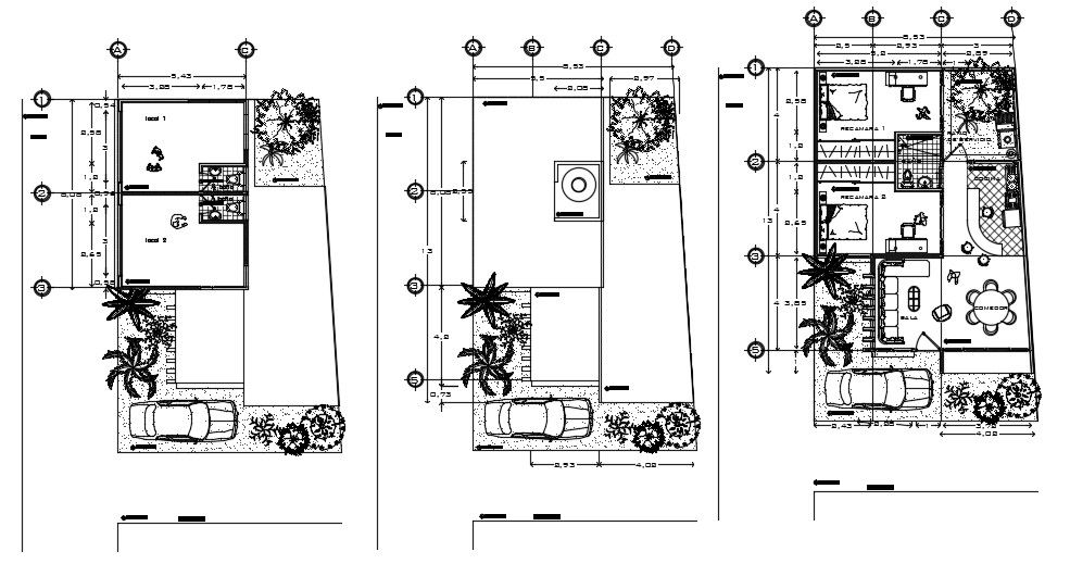 Luxury Bungalow House Plans With Furniture Layout AutoCAD File Free; detail of bungalow plan with furniture layout, centerline plan, plantation, working dimension and much more detail in it DWG file free.
