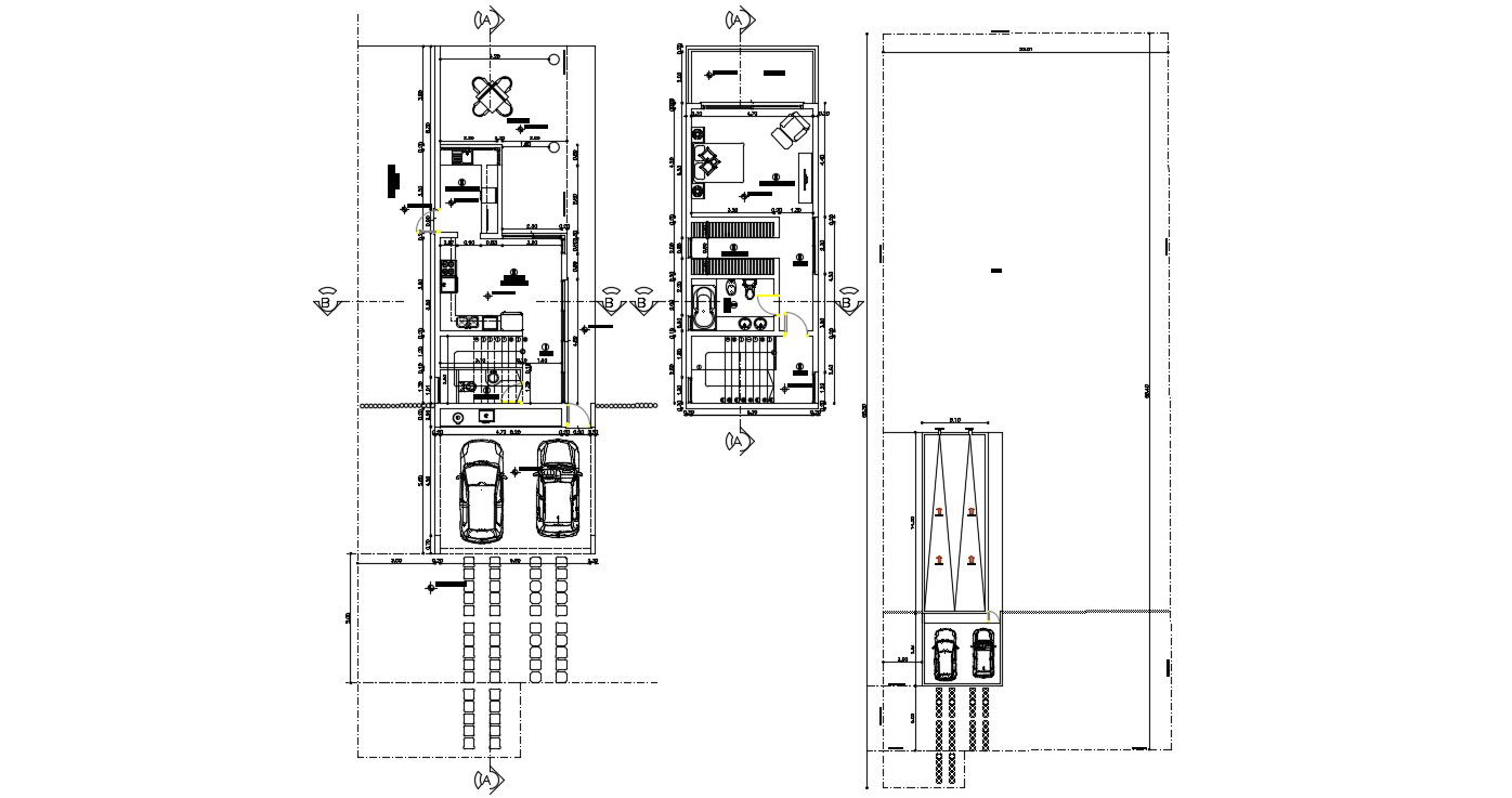 CAD Furniture layout design of house plan that shows working set dimension details, building floor level details, room details, parking space area, and various other house amenities detail download CAD file for detailed work drawing.