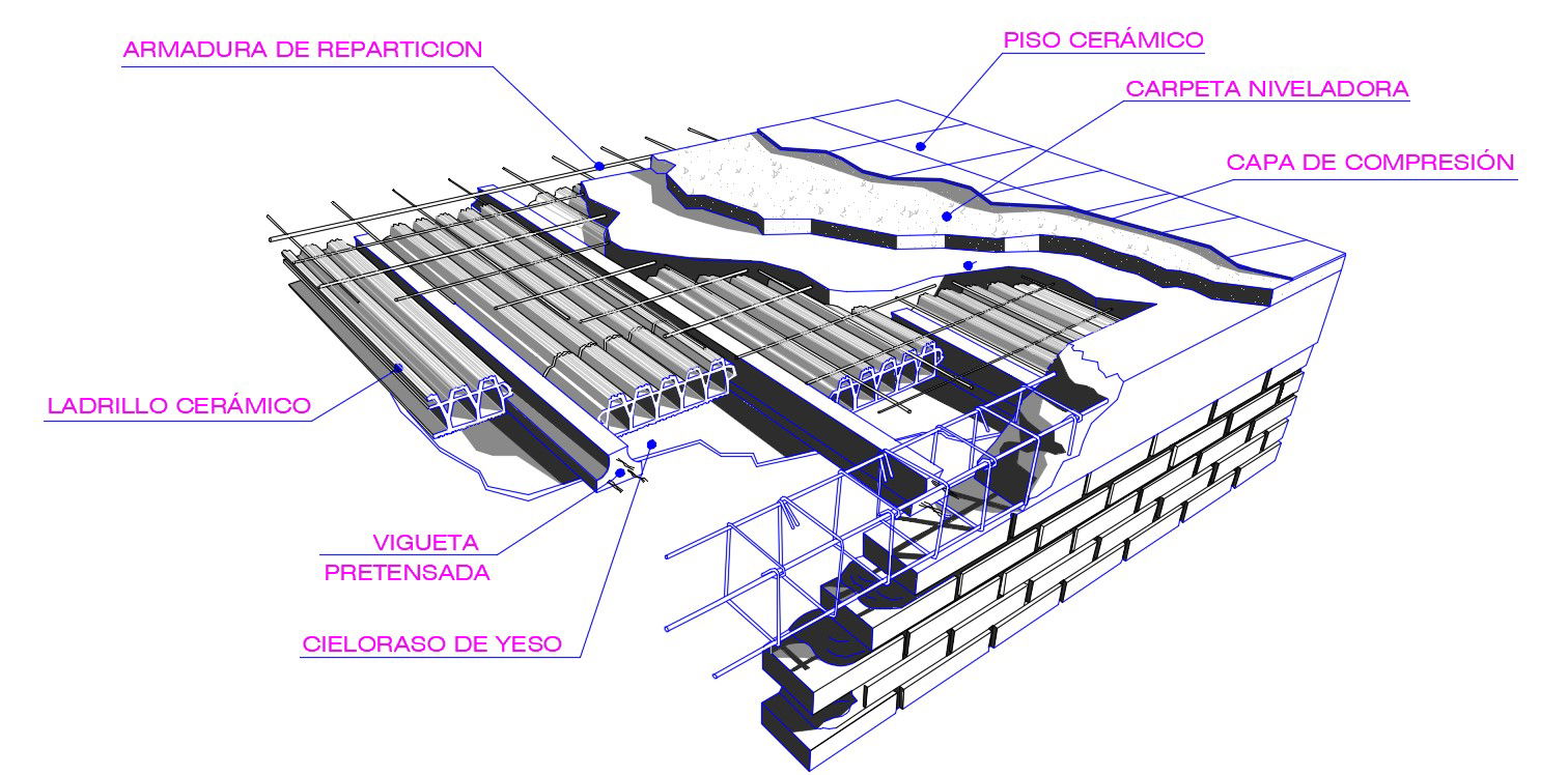 Construction details of RCC Slab design that shows an isometric view of RCC slab along with reinforcement steel bars and concrete masonry work details download CAD drawing for detailed work Drawing.