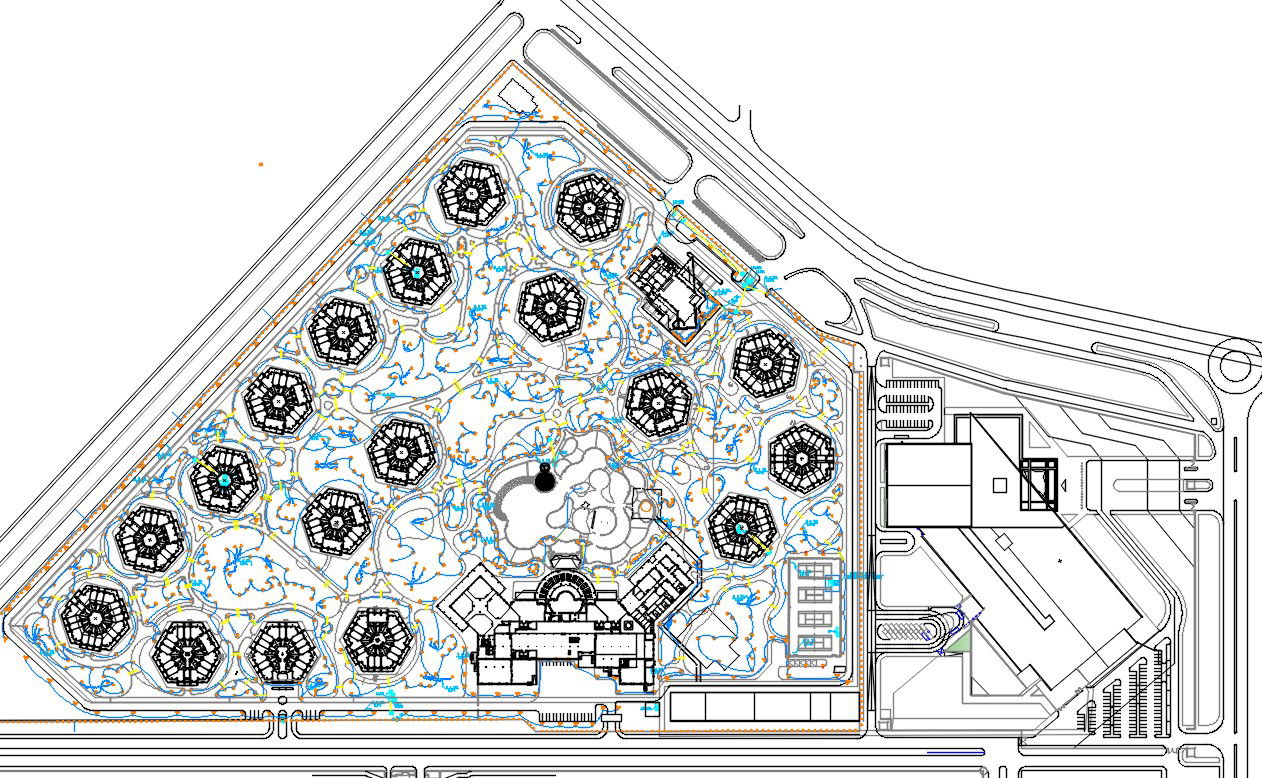 Corporate Building With Electrical Layout Plan; 2d CAD drawing of corporate building with street light electrical layout plan. Download DWG file and get more detail about the landscaping electrical lighting layout plan.