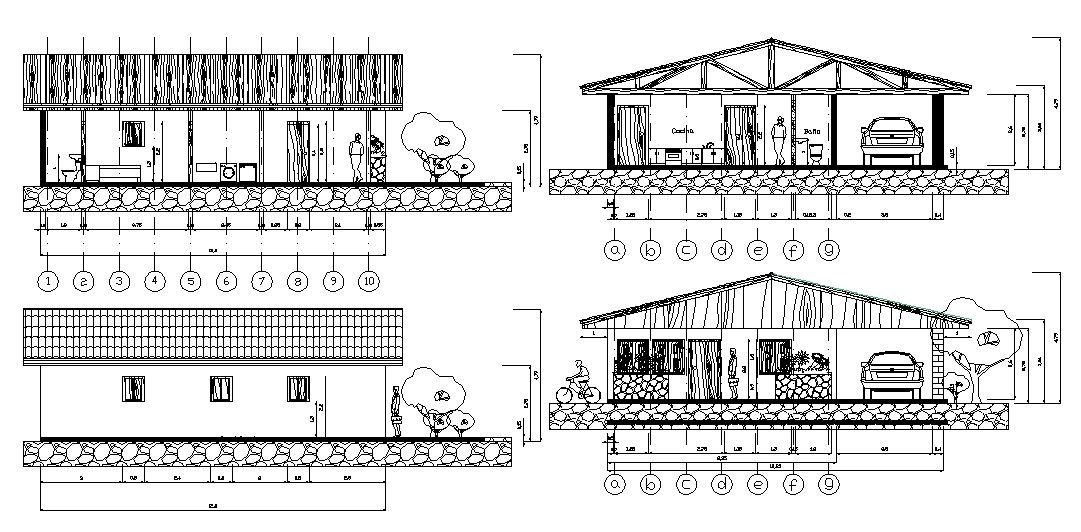 Residential apartment side elevation and sectional drawing that shows roofing structure details, building height details, floor level, parking space, and various other details download CAD drawing.