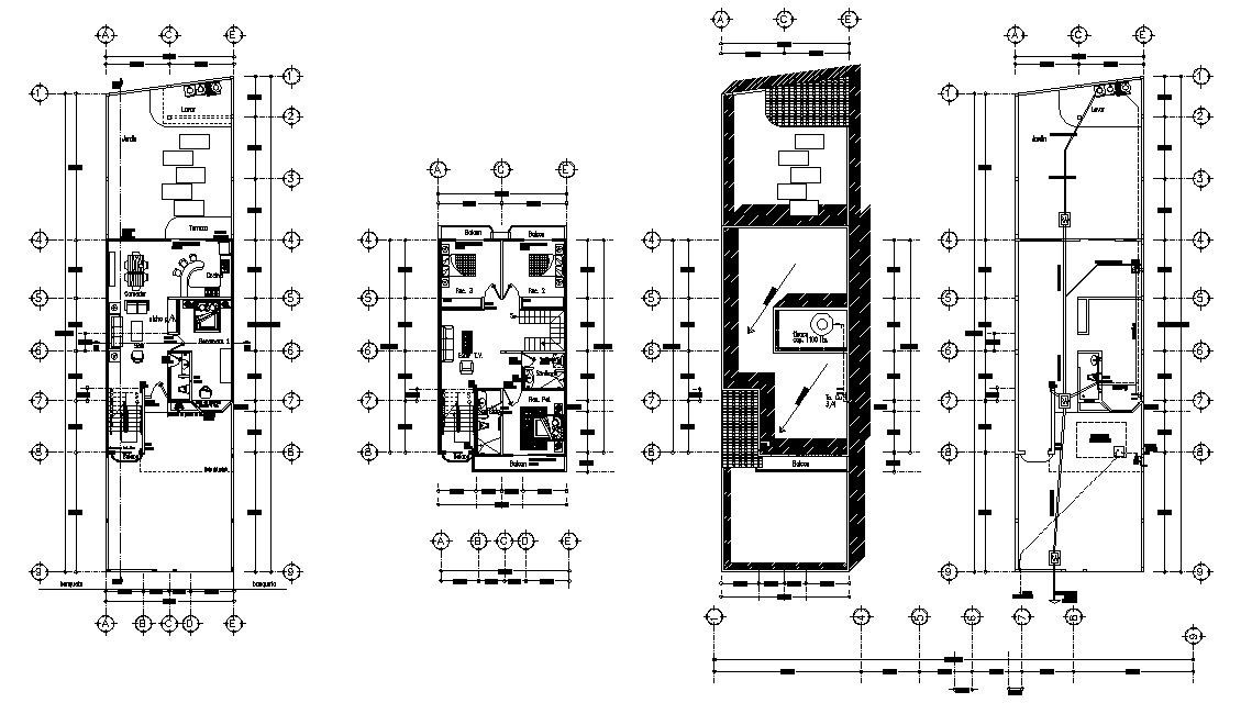 Furniture layout plan details of 4 bhk residential bungalow that shows bungalow floor level, terrace plan, dimension working set, section line, parking space area, compound boundary wall, and various other details download CAD drawing for detailed presented work drawing.