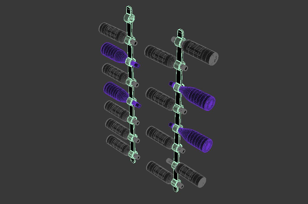 MS Bottles Rack 3D MAX File Free Download; bottles stand with bottles in rendered 3D MAX file free.
