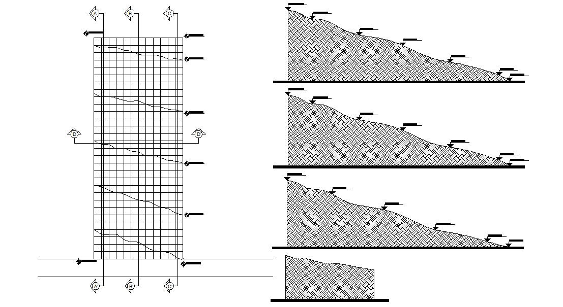 CAD drawing details of road leveling pavement design for slope along with section line and various other detailing download files for free.