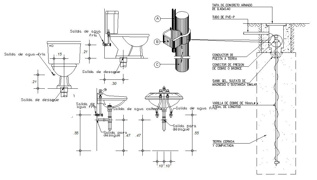 Sanitary AutoCAD blocks details of washbasin and water closet different sides of elevation like front and side elevation is shown in drawing along with plumbing blocks details download CAD file for free.