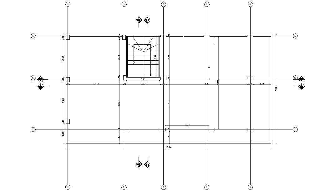 CAD drawing details of residential house column plan details that include column spacing details, dimension working set, section line details download file for free.