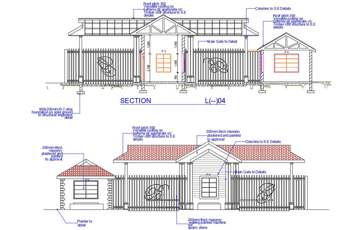 Guard Room With Compound Gate DWG File; download free AutoCAD file of security guard room with compound wall and railing design.