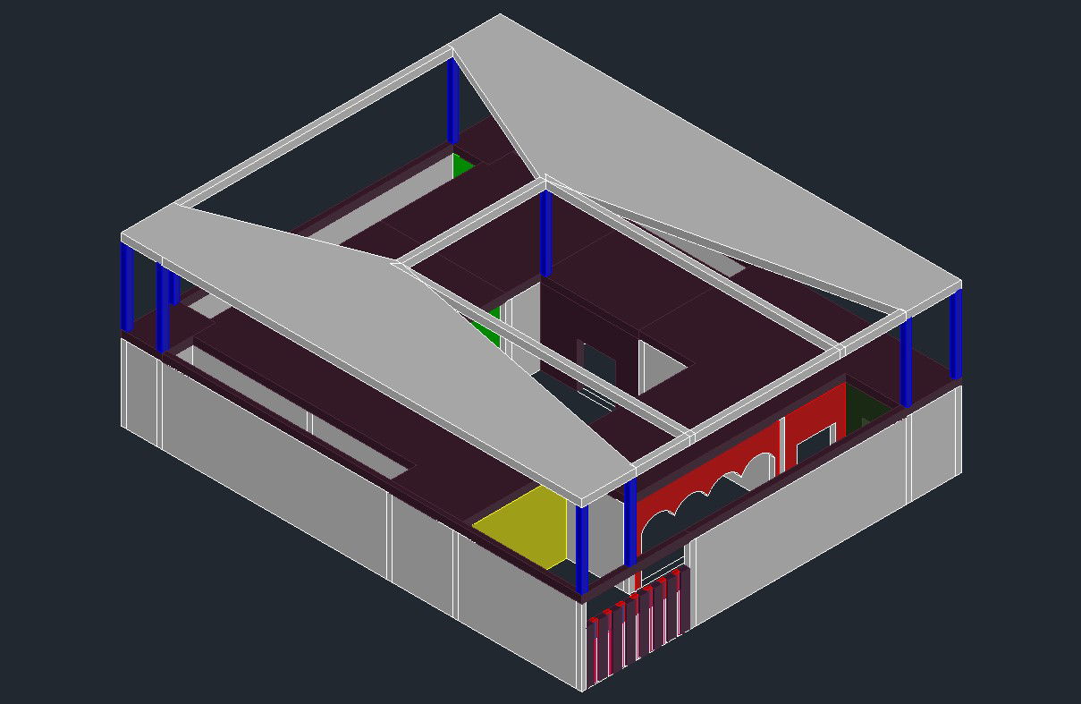 3d House Model Free DWG File; download free AutoCAD file of single storey 3d house model DWG file.