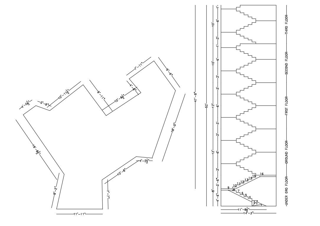 Building Line Drawing With Staircase DWG File; download free AutoCAD file of building line drawing and staircase with dimension detail.