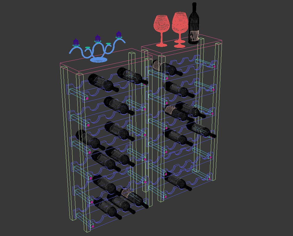 Wine Bottle Stands And Candles With Some glasses 3D MAX File Free; wine bottle rack and candle, glasses 3D MAX free file.