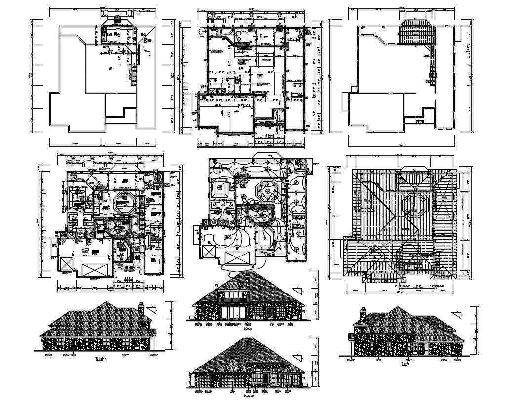 Architecture House Project AutoCAD File; the architecture layout plan has been designing in AutoCAD software, drawing showing layout plan includes floor plan, column plan, electrical layout plan, and roof plan with all dimension detail. download DWG file of house project with all side elevation design.
