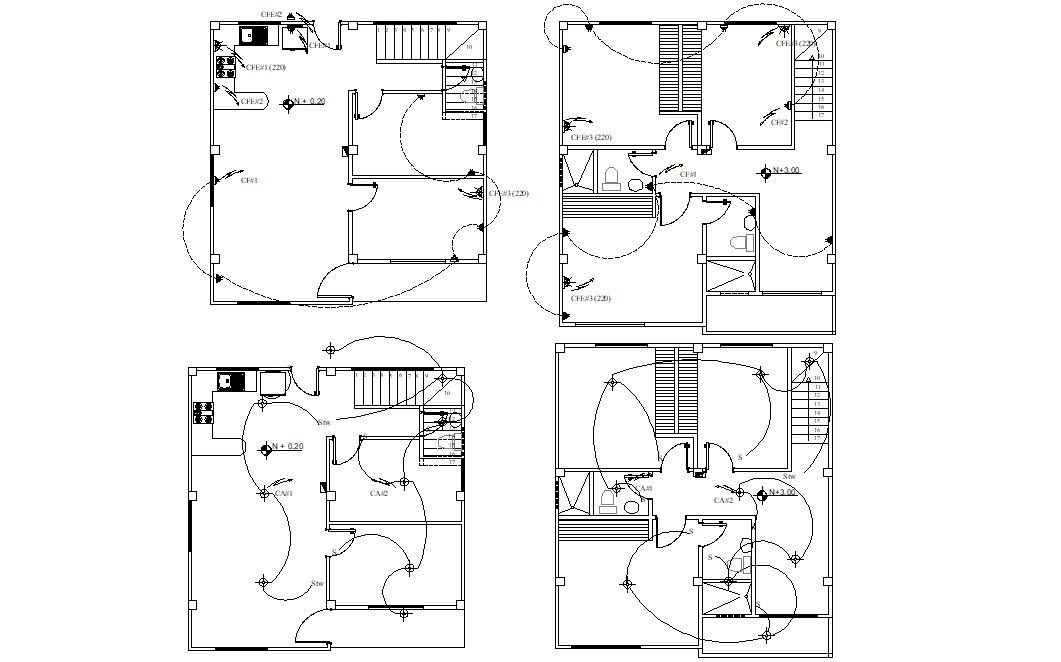 Residential bungalow design electrical wiring plan that shows fuse circuits wiring details in the house along with switch panel board details download AutoCAD drawing.