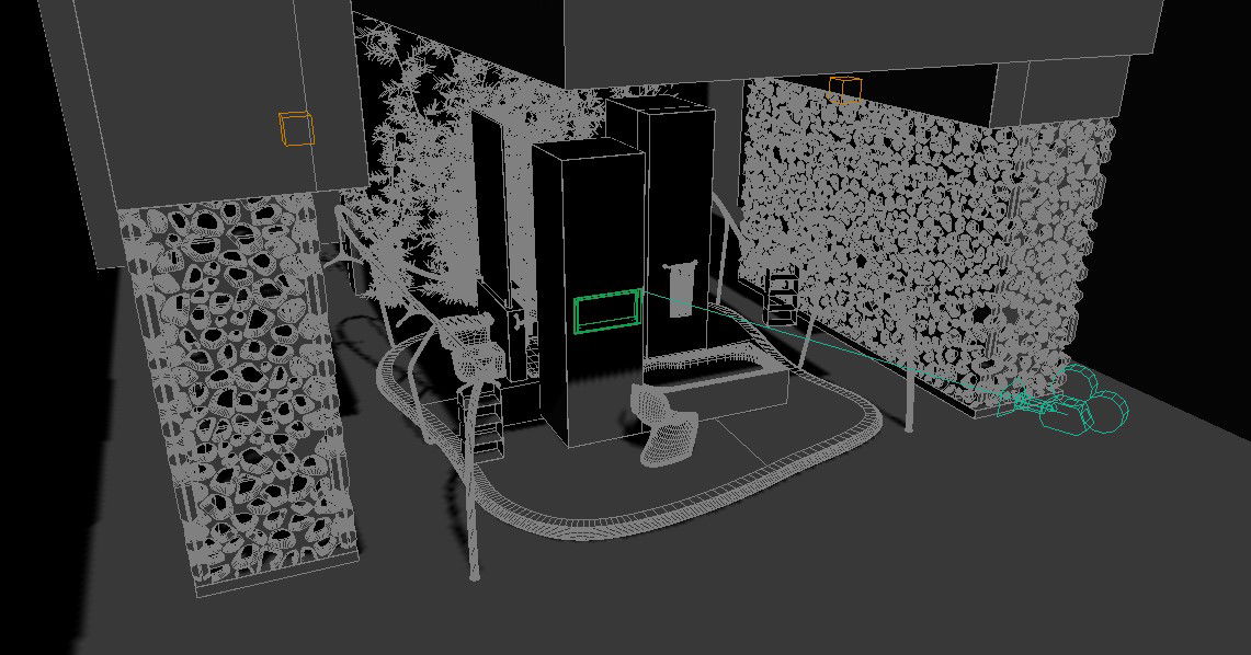 Inside View Of Bath Area 3D MAX File Free; rendered in 3D MAX software its bathroom furniture like a bathtub cabinet, stone wall, some plantation file free