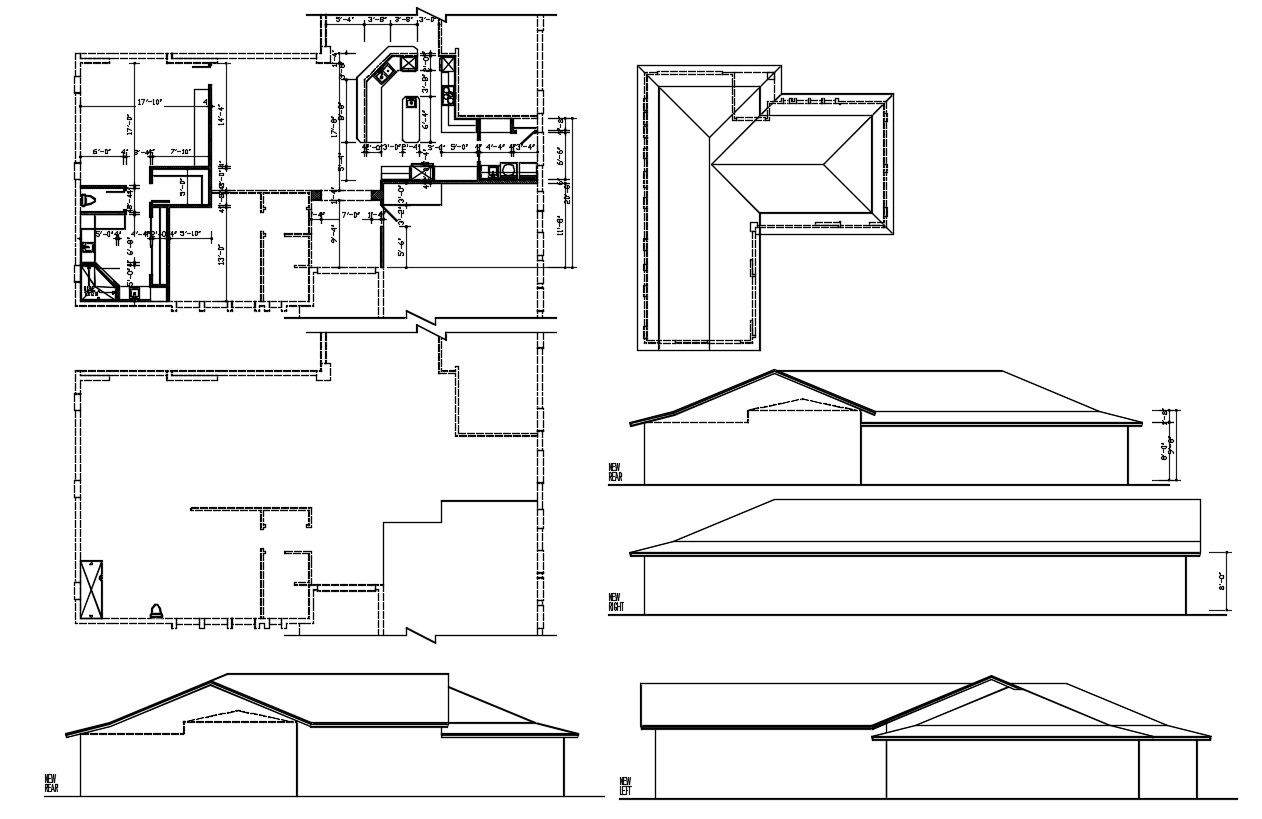 House Project AutoCAD Drawing; the house layout plan with dimension detail, roof plan, and all side elevation design in AutoCAD format. download DWG file and use this CAD drawing for the reference plan.
