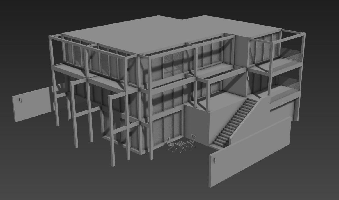 Architecture Building View 3D MAX File Free; in this building big balconies, sliding doors, many pillars, stairs, glass railing 3D MAX File Free.
