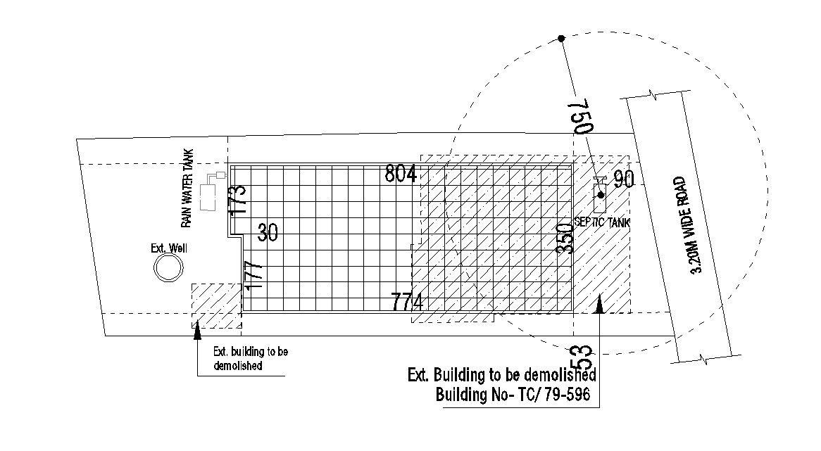 2d CAD drawing details of demolished existing building design that shows nearby road network details along with dimension working set details download file for free.