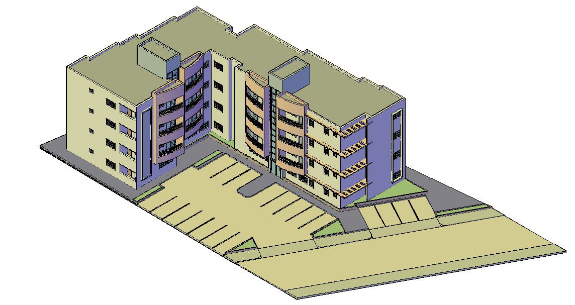 Isometric view design of residential housing apartment along with parking space area design download CAD drawing for free.