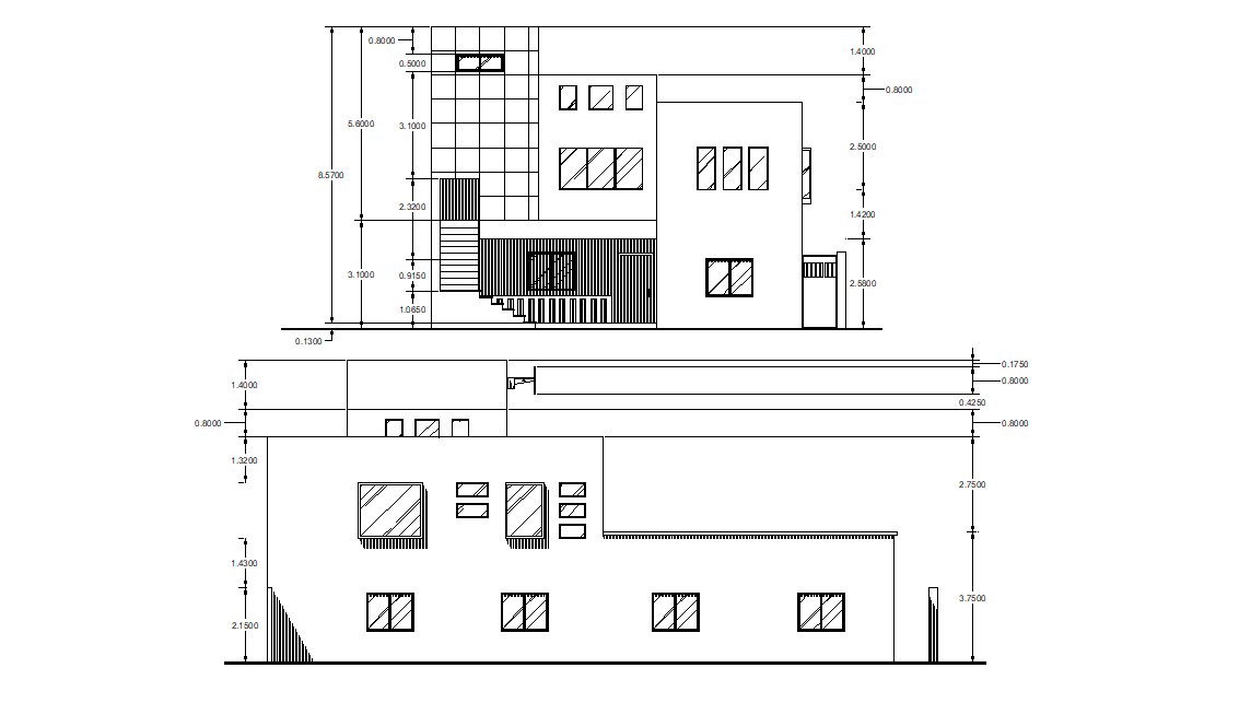 Bungalow Elevation Design 2d AutoCAD Drawing