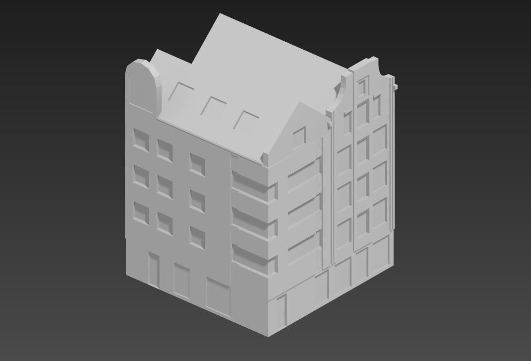 4-Story Simple Building Elevation Rendered in 3D Format files