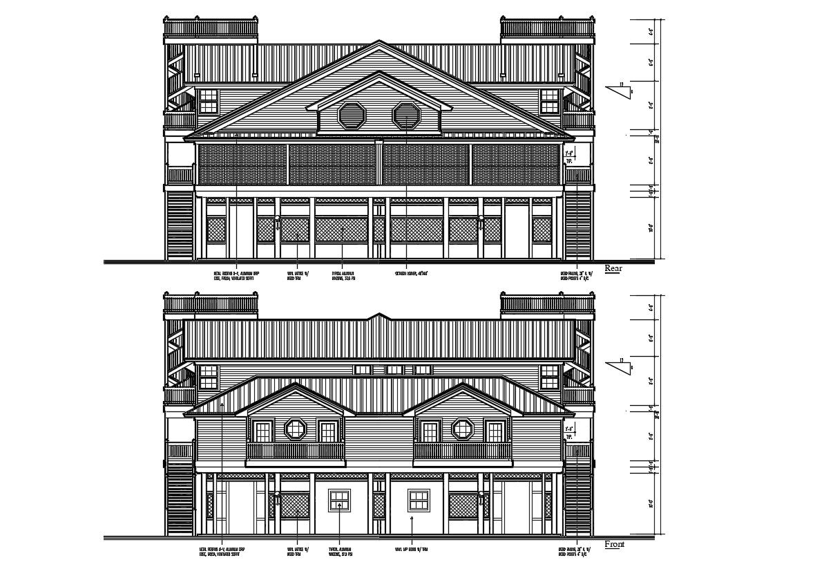 Residence Front And Rear Elevation Design DWG File; the architecture residence building front elevation and rear elevation design with all dimension details in AutoCAD format. download AutoCAD file and collect the fabulous ideas that would serve as a good source CAD Drawing.