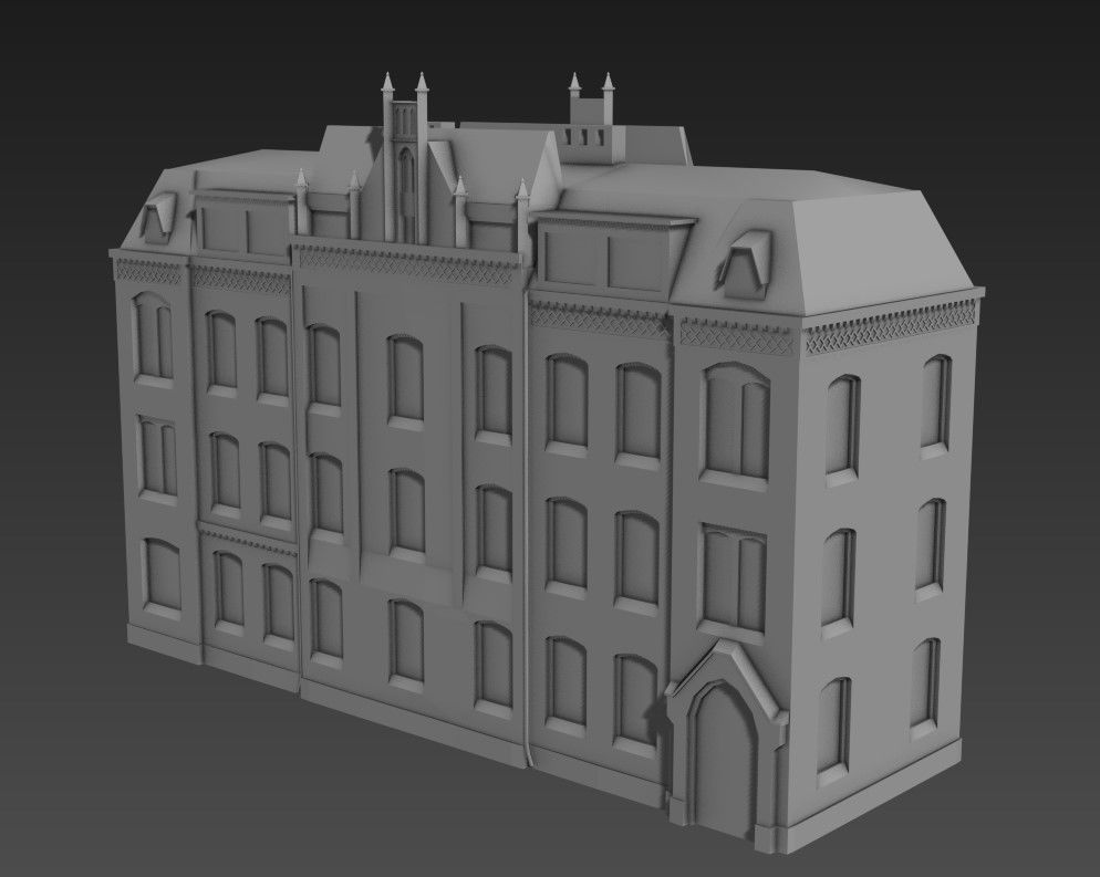 Big palace Elevation 3D MAX File Free; in this elevation, its historical architecture style includes big openings in an arc shape, 4 story building, sloping roof, and much more detail 3D MAX File Free.