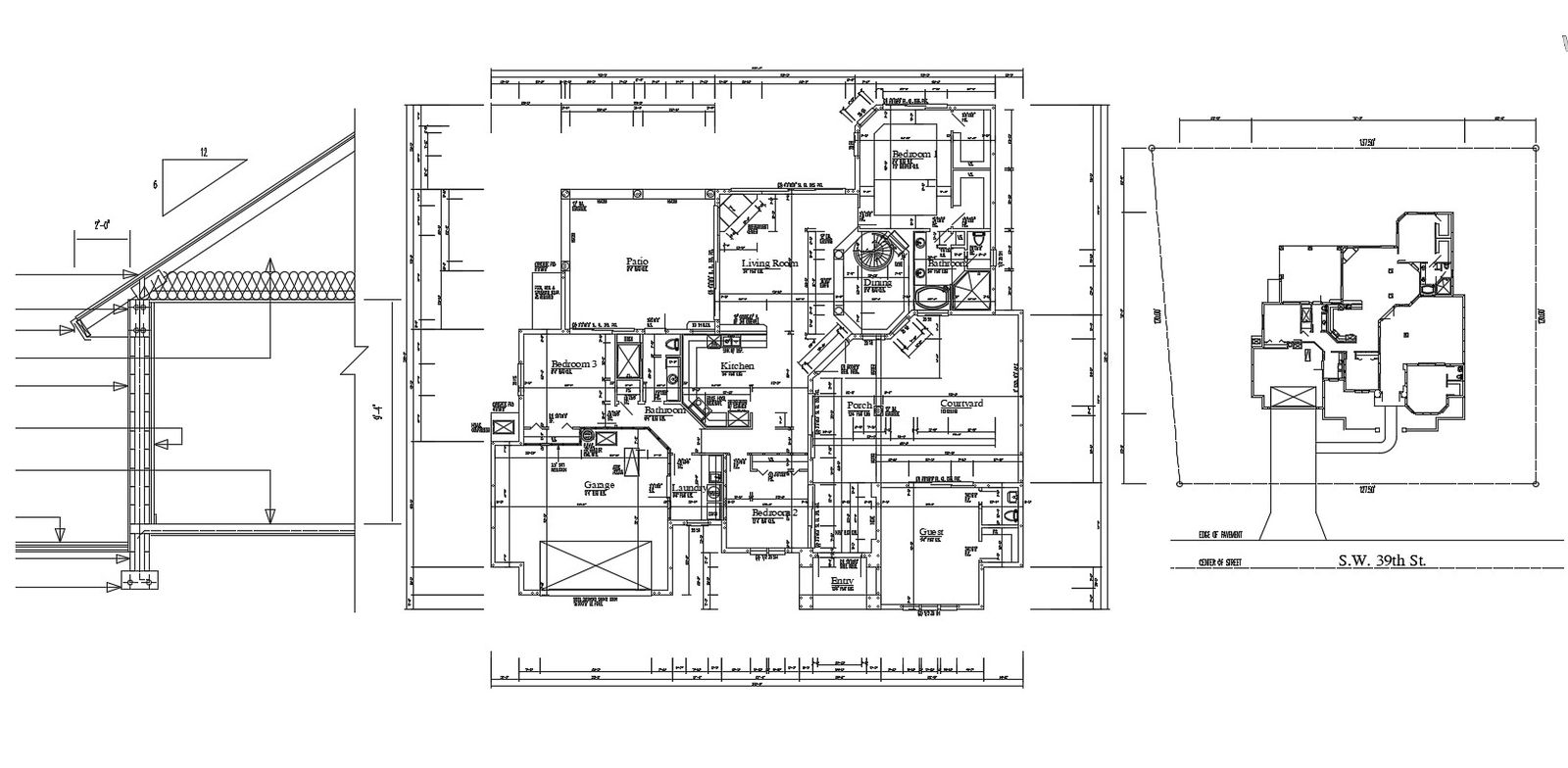 Residential traditional style house project layout plan that shows roof section details, dimension working set details, house room details, room dimension, floor level, and various other details of house design download CAD drawing.