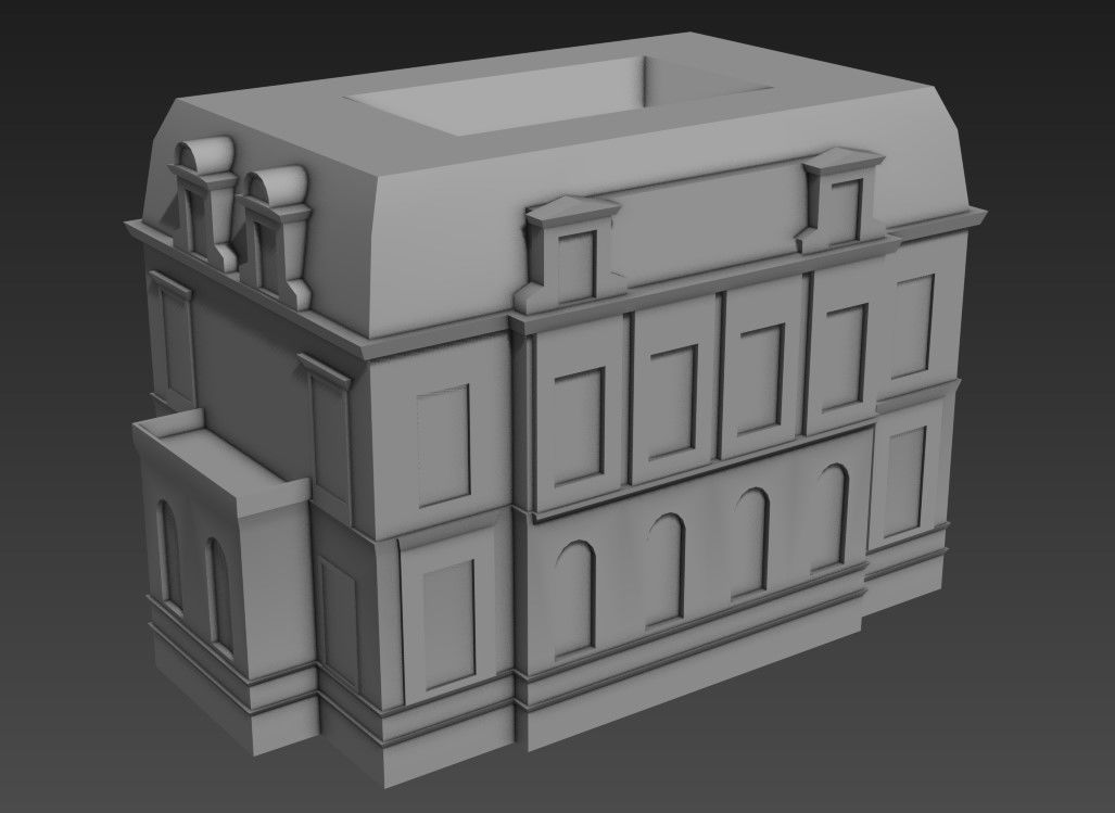 2 Story Apartment Building Elevation 3D MAX File Free Download; this is the historical elevation of an apartment building that looks like a royal palace, the huge main entry