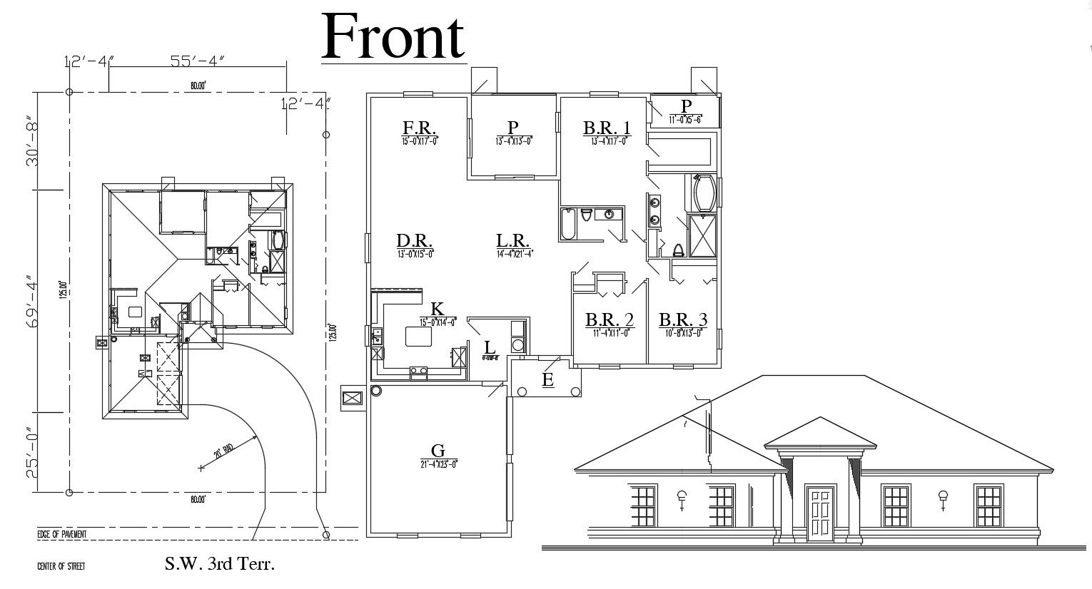 Layout plan details of residential house design that shows house front elevation details along with room dimension details, site area design, and various other details download the file.