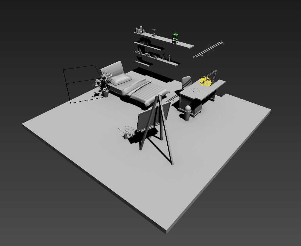 3D Inside View Of Bedroom With Furniture 3D MAX File Free; this is the inside view of a bedroom with all king of furniture detail like a bed, chair plants, tv unit, bookshelf painting board, and much more other things 3D MAX File Free.