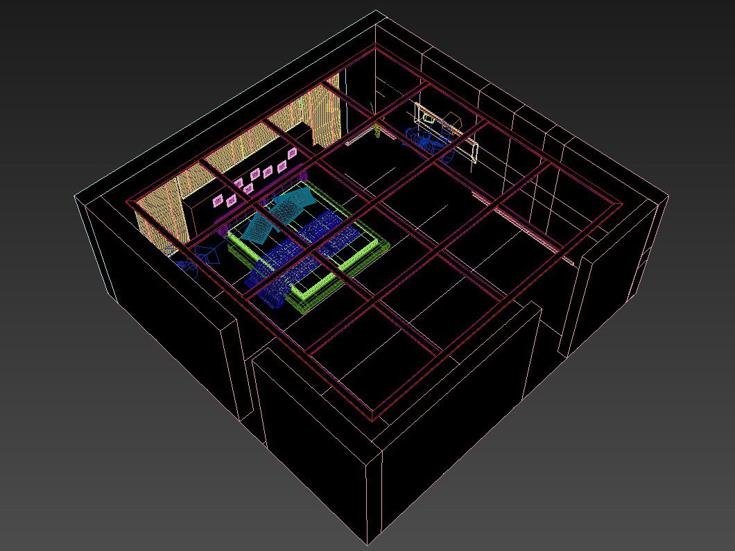 3D View Of Bedroom In 3D MAX File Free Download; this is the bedroom 3d view includes a bed , ceiling design, tv unit, paneling, flooring design and much more detail in it 3D MAX File Free Download,